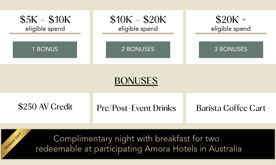 To secure your event booking, where a tentative booking is made more than fourteen (14) days prior to the event, an initial deposit of 30% of the estimated total event spend is required within seven (7) days from confirmation. The deposit must be paid in full within seven (7) days from the date the booking is made, or by fourteen (14) days prior to the event, whichever is earlier. A further deposit of 20% of the estimated total event spend is required thirty (30) days prior to the event along with the balance of accommodation booked.Deposits are non-refundable and non-transferable under any circumstances. The accommodation voucher is valid for 12 months from the date of issue.